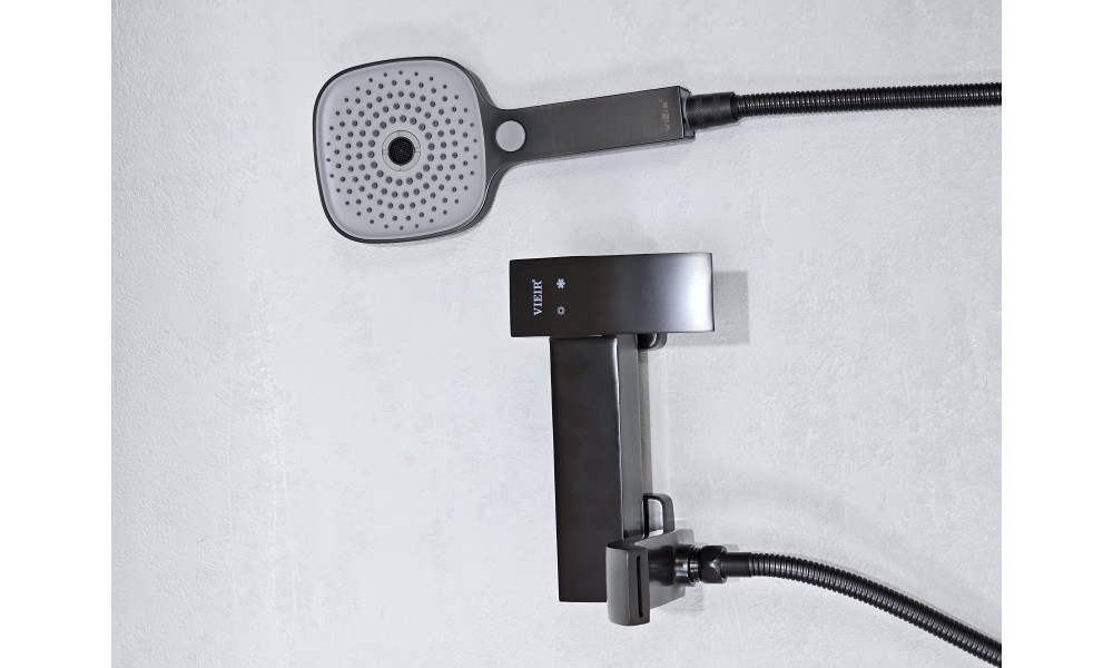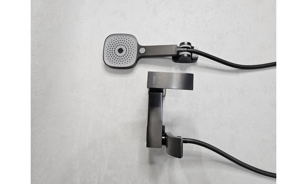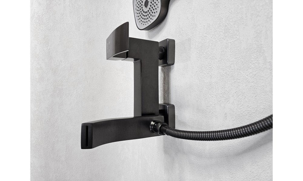 Смеситель для ванны ViEiR V433531-G, с поворотным каскадным изливом, в цвете: Оружейная сталь / Графит