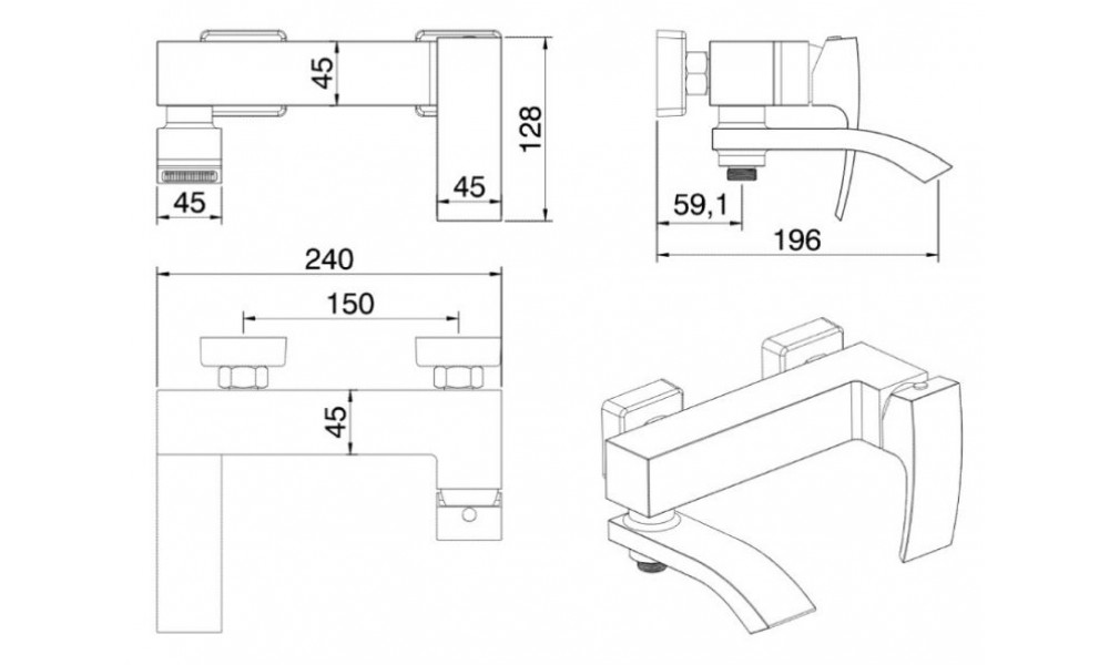 Смеситель для ванны Vivi Felice 2040 в цвете Хром.