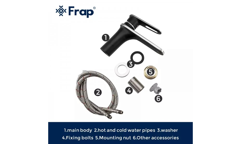 F1049-6 Смеситель для умывальника Frap (Черный/Хром)
