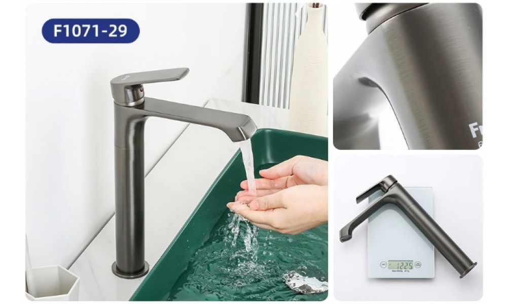Смеситель для умывальника высокий Frap F1071-29 из латуни, в цвете Оружейная сталь.