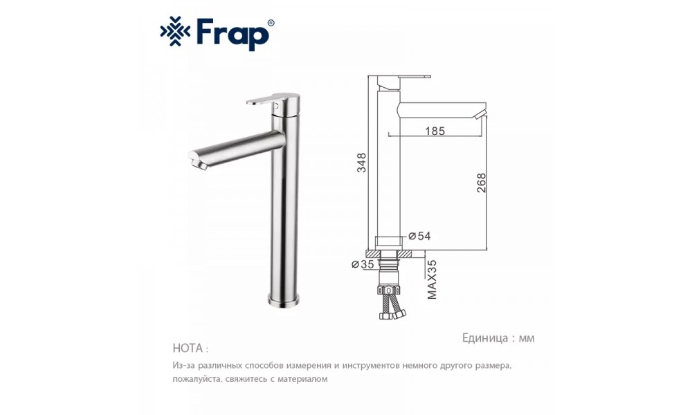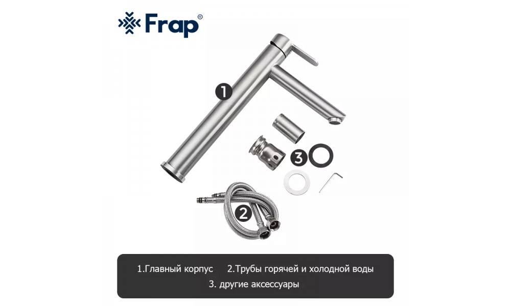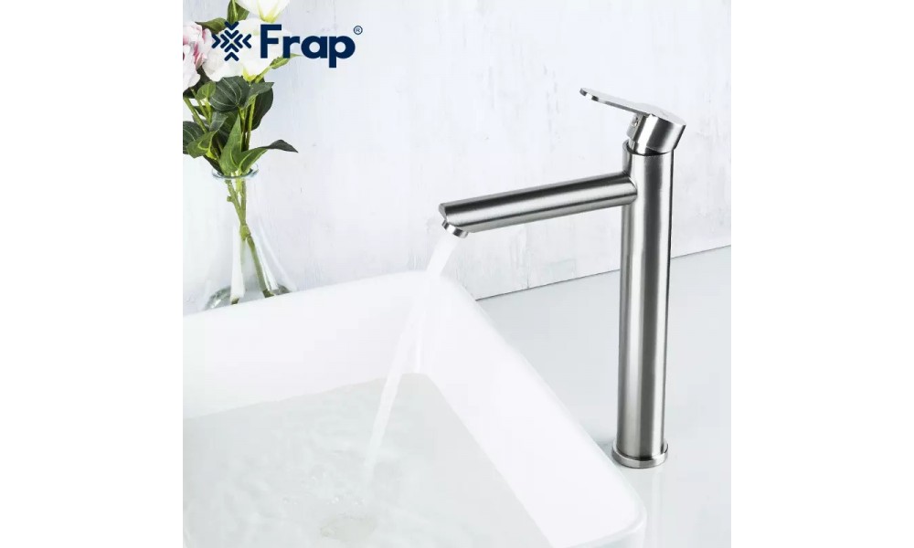 Смеситель для умывальника высокий из нержавеющей стали Frap F10801-2 (Сатин).