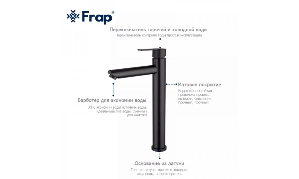 Смеситель для умывальника высокий из нержавеющей стали Frap F10801-62 (Чёрный).
