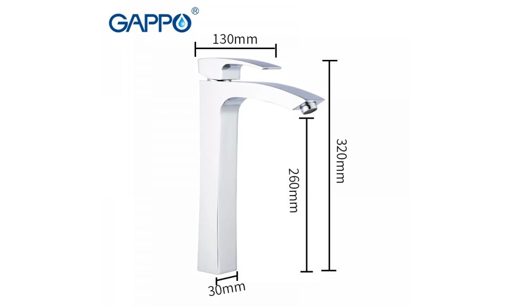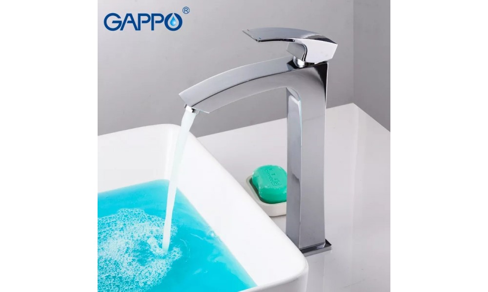 Смеситель для умывальника высокий Gappo G1007-11 с каскадным носом, однорычажный, материал: Латунь.