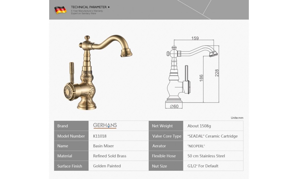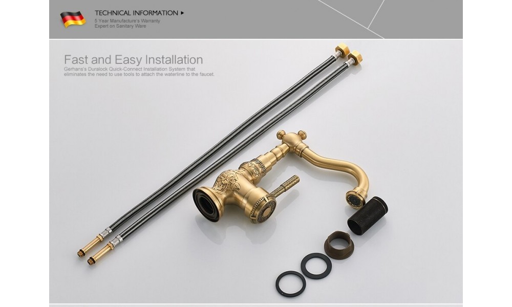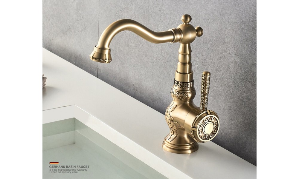 Элитный смеситель для умывальника в бронзовом цвете K11018 от бренда Gerhans в стиле ретро.