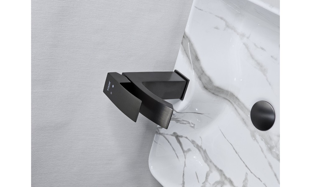 Смеситель для умывальника ViEiR V433511-G, с каскадным изливом, в цвете: Оружейная сталь / Графит