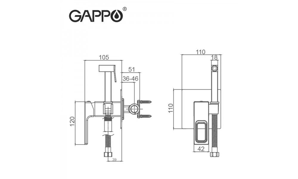 Встраиваемый гигиенический душ Gappo G7217-6